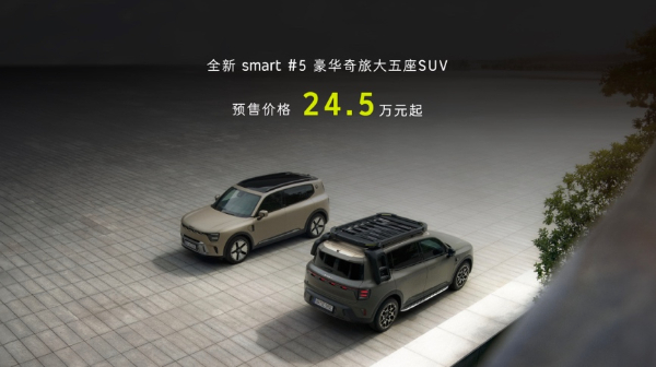 近日,新奢智能纯电汽车品牌smart旗下豪华奇旅大五座SUV——全新smart精灵#5,在北京举行“#5奇妙夜,全新smart #5豪华奇旅大五座SUV中国预售发布会”活动,并开启预售,价格24.5万元起。