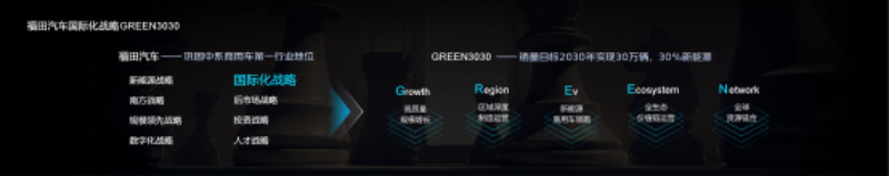 3030战略目标旨在到2030年实现海外销量30万辆,新能源占比达到30%。GREEN不仅代表绿色科技与解决方案,还蕴含五个重要概念:G—Growth象征产品、技术路线、营销创新、全球供应链体系、组织人力国际化的全方位布局,有机结合规模扩张与高质量发展;R—Region彰显属地化深度制造运营,提升经济发展动能;第一个E—EV,寓意自主研发和全球合作双驱动,领跑新能源商用车;第二个E—Ecosystem,诠释了覆盖全球的后市场全生态价值链运营;N——Network,喻示着全球资源链合体系,实现资源的高效整合与优势互补,也将为福田国际化业务拓展和未来增长注入持久的动力。