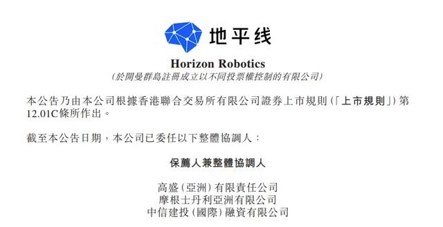 2024年10月8日,港交所网站挂出地平线PHIP版招股书,这意味着智驾科技企业地平线(Horizon Robotics)正式通过港交所聆讯,即将踏入港股市场。高盛、 摩根士丹利和中信建投国际担任联席保荐人。