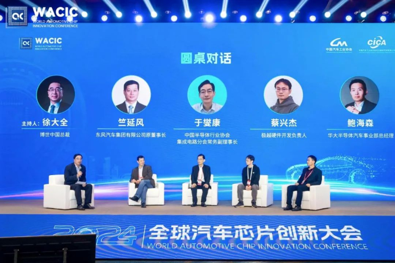 为加强交流、碰撞思想,在博世中国总裁徐大全的主持下,东风汽车集团有限公司原董事长竺延风、中国半导体行业协会集成电路分会常务副理事长于燮康、极越硬件开发负责人蔡兴杰以及华大半导体汽车事业部总经理鲍海森共同参与了大会的圆桌对话环节,就产业链上下游协同发展、国际化开放合作和软硬协同等话题分享了真知灼见。