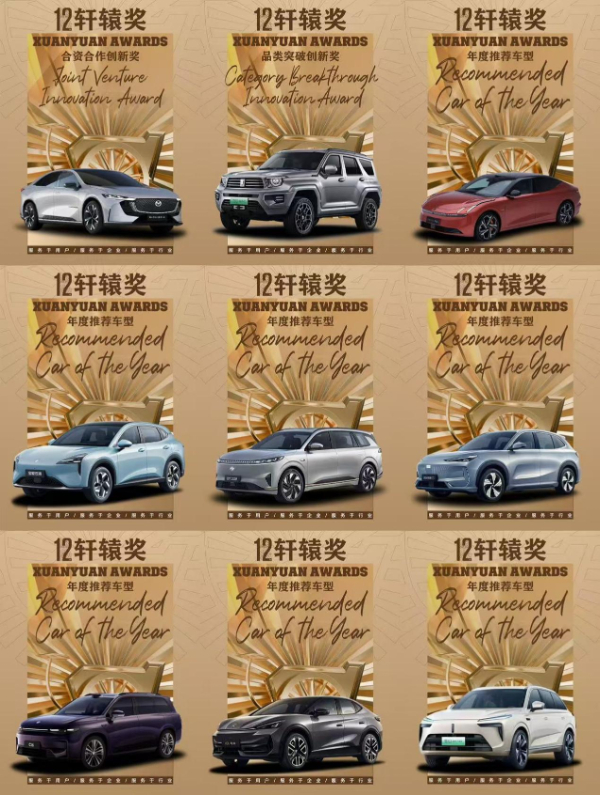 第十二届轩辕奖还评选出了年度十佳汽车、合资合作创新奖、品类创新突破奖、年度推荐车型等奖项。