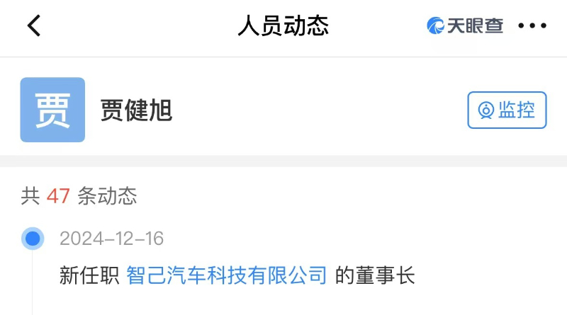 据媒体报道,工商信息显示,12月16日,智己汽车科技有限公司发生工商变更,王晓秋卸任法定代表人、董事长,由贾健旭接任。