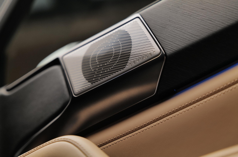 豹8全系标配18个扬声器的帝瓦雷音响系统,使用了帝瓦雷的专利技术,通过帝瓦雷对声场的调校,将帝瓦雷Phantom(幻影)系列音响的效果带入豹8车中,可实现车内音乐播放的高保真渲染、炸裂的低音,带来无与伦比的空间感。