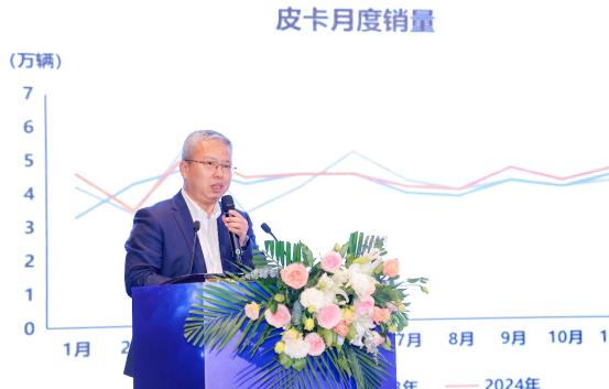 中国汽车工业协会皮卡分会副秘书长、中国皮卡网CEO兼总编辑谷国全在会上做了《携手同行谋突破,助力民生共发展》的专题分享。他在分析2024年国内皮卡终端市场情况时表示,国内皮卡市场表现疲弱,但产品消费上有几个特点:家用产品更注重乘用化、智联化;商用定位的皮卡注重提升舒适化。另外皮卡品类在整体提升,皮卡主力用户(商用类)的更关注 “多、强、好、省”四个方向。他表示短期内受相关因素影响,行业会遇到一些困难,但这个时候更需要业界拧成一股绳,共同努力走出去;中国皮卡网在2025年将继续发挥自身优势,通过线上+线下两个渠道,不断打造行业大事件,助力行业进步。