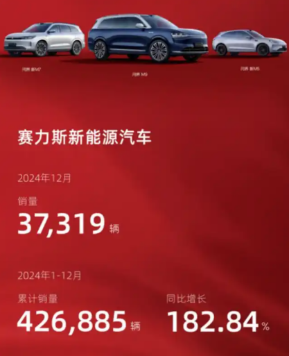 根据中国汽车工业协会发布的数据,2024年,我国新能源汽车产销量分别达1288.8万辆和1286.6万辆,同比分别增长34.4%和35.5%,保持快速增长。同时,2024年新能源汽车新车销量达到汽车新车总销量的40.9%,较2023年提高9.3个百分点。继续成为中国汽车工业的重要增长点。在风起云涌的新能源汽车市场中,赛力斯以其卓越的表现,成为了一颗闪亮的明星。数据显示,赛力斯2024年12月新能源汽车销量达37319辆;1-12月新能源汽车累计销量达426885辆,全年新能源汽车销量同比增长高达182.84%。这一惊人的增长速度不仅彰显了赛力斯在新能源汽车领域的强劲实力,也为其未来的发展奠定了坚实基础。从技术、营销、体验等多个角度来看,赛力斯品牌的向上跃升之路充满了亮点。