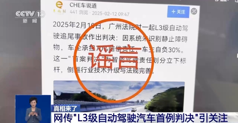 网传“L3级自动驾驶汽车首例判决”引关注 官方辟谣-新华网