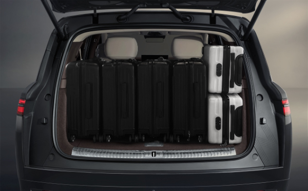 腾势N9整车布局同级最多的46个储物空间,如二排遥控器收纳槽、副驾密码手套箱等独特设计。腾势N9还创新性地采用“666”布局,全车配备6个云栖座椅,即使是在满载6人的情况下,依然可轻松容纳6个行李箱(包括4个20寸标准登机箱和2个儿童拉杆箱)及6个背包,或轻松横置放下47寸高尔夫球包,满足全家出行的多样化需求。