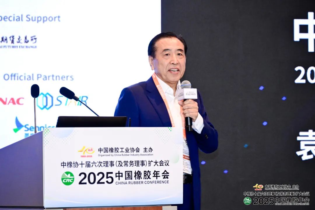 3月26日,中国橡胶工业协会十届六次理事(及常务理事)扩大会议暨第二十届中国橡胶年会在山东青岛举行。本届大会的主题为“绿色创新,智造未来:橡胶工业的可持续发展之路”。中国橡胶工业协会高级副会长、主席团企业执行主席、赛轮集团名誉董事长袁仲雪在大会论坛上发表《绿色创造 智造未来(AI)》的主旨报告。