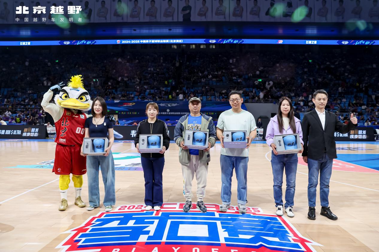 4月16日,北京北汽队与北京北控队在首都体育馆上演季后赛八进四第二场激烈较量。北汽男篮北京越野品牌之夜同步举行,其中最引人瞩目的是BJ40增程车主交车仪式。车主球迷们在享受篮球激情的同时,登上京城德比赛场体验交车,与球员近距离互动,整个活动排面拉满,车主球迷尽享专属礼遇。此外,北京越野还宣布启动BJ40增程1200公里极限续航挑战。