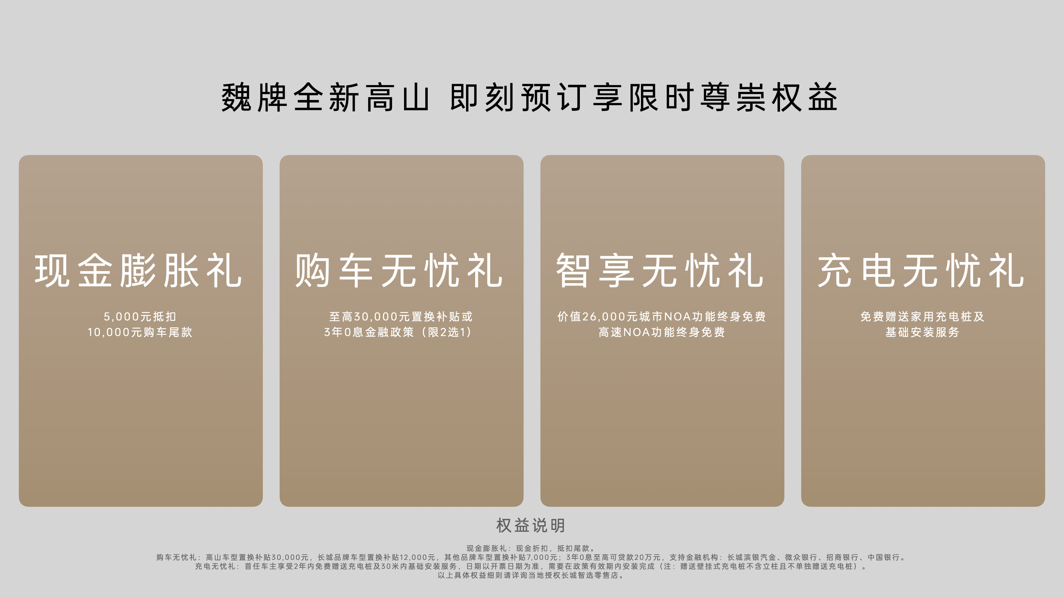 充电无忧礼:免费赠送家用充电桩及基础安装服务。