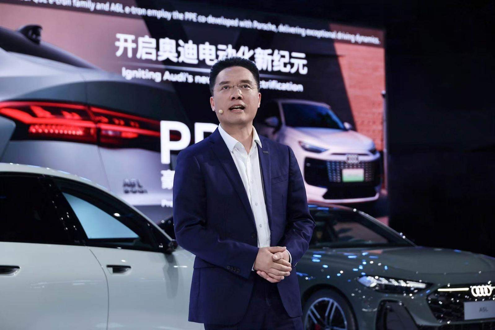 图为中国一汽党委常委、副总经理兼一汽-大众党委书记、总经理陈彬表示,一汽奥迪将为广大客户提供高品质高科技的豪华电动出行体验