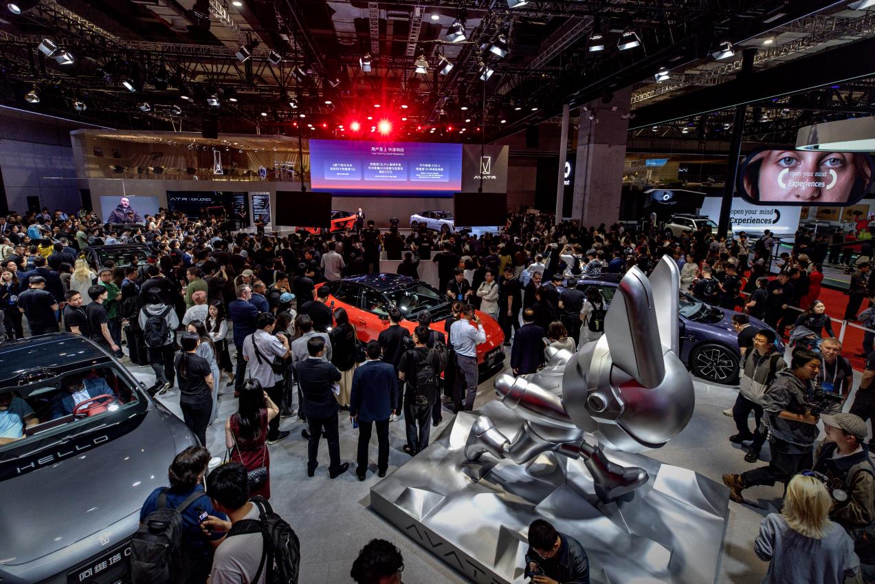 为进一步诠释品牌焕新理念,此次车展,阿维塔携手知名潮流艺术IP——ROBBi太空兔,共同打造潮流主题展区,展台展出了全球首发的奔跑ROBBi艺术装置及阿维塔联名限定款ROBBi,通过丰富的互动形式,为用户带来不一样的看展体验。