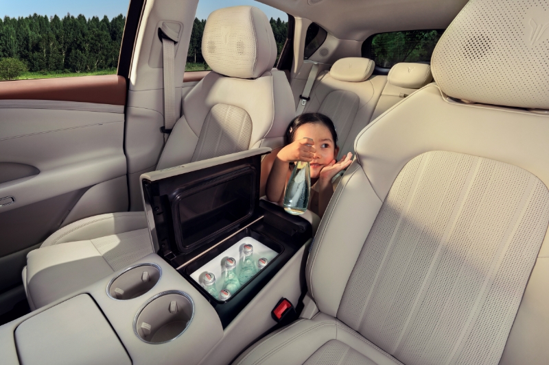 不仅如此,岚图FREE+还提供了行业领先的超大7L冷暖一体箱,轻松放下6瓶矿泉水或者三层饭盒;从-6℃到50℃的超宽温度调节,无论奶瓶、冰激凌、药品、便当还是化妆品,都能够保持最合适的温度;同级第一的降温速度,可10分钟内从常温降低至0°,让每次旅途都能更加惬意。