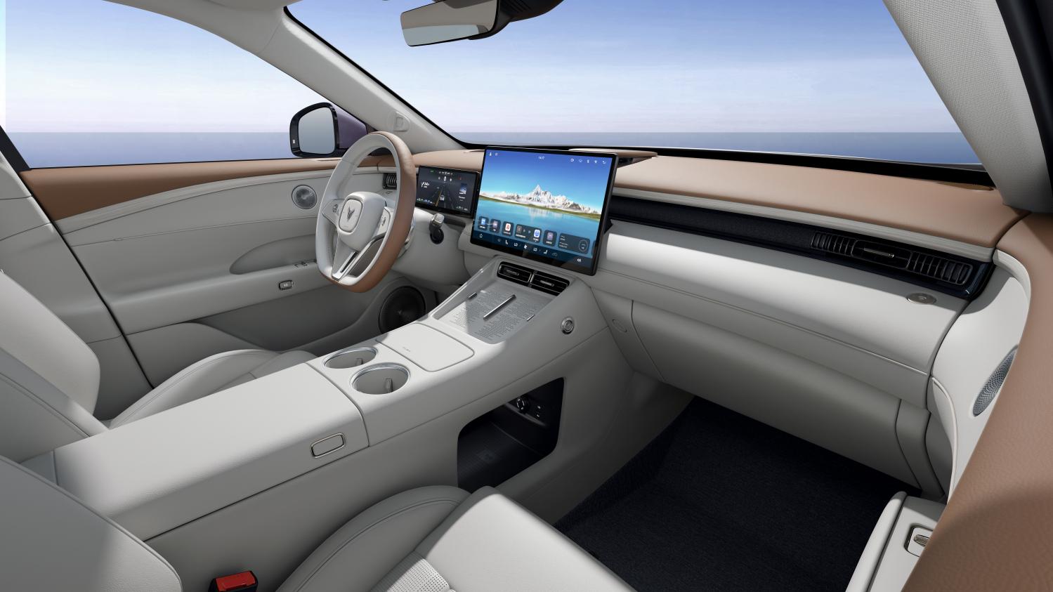 岚图FREE+的座舱相对于岚图FREE 318采用了全新的设计语言,整体风格既有科技感,又具有温馨的氛围感。其采用了“浮光岛屿”的视觉风格和沉浸式五感的体验设计,整体采用上下分层的浮岛式布局;中控台上层集成功能区域,尽显数字科技魅力;下层模拟天鹅展翅带来舒适的包裹感和横向的宽适体量感;无界式风口设计摒弃传统机械割裂感让体验更顺畅。