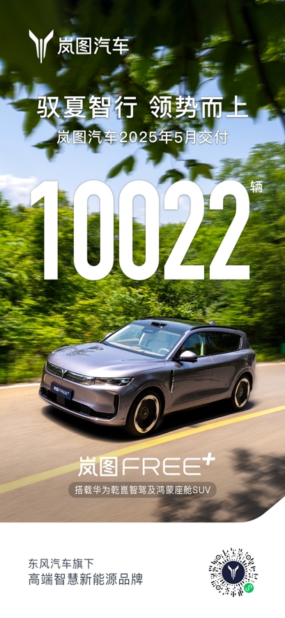 岚图汽车CEO卢放表示:“今年以来,岚图汽车以用户为中心,加快技术创新、产品迭代和渠道布局,提升一心一意的服务质量,月销量不断攀升、持续破万。同时,岚图汽车积极创新品牌打造思路,以‘冠军’品质服务女足、跳水等顶级赛事,形成‘国之盛事用岚图’的高端定位,品牌影响力不断提升。六月,全面焕新的岚图FREE+将正式开启预售,给用户带去更好选择,也相信一定会成为岚图又一个爆款产品。”