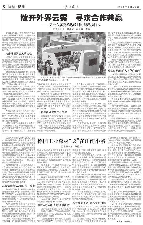 原标题:参考消息特稿|拨开外界云雾 寻求合作共赢——第十六届夏季达沃斯论坛现场扫描