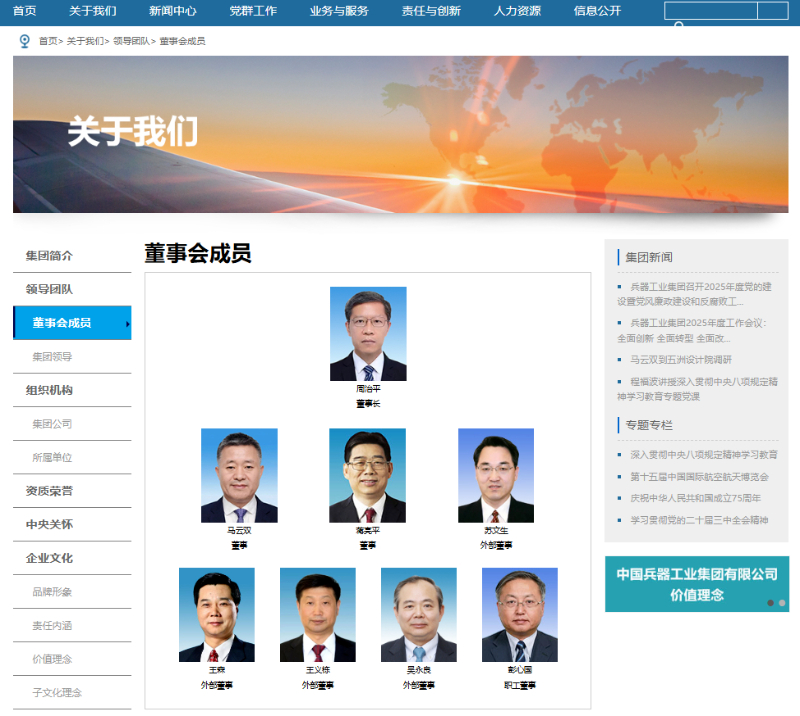 中国兵器工业集团有限公司官网截图