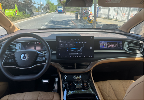 进入车内,腾势D9以“双色豪华”为主题,提供云峰棕、旷达米等多元配色方案,搭配山海百纳真木饰板与NAPPA真皮座椅,营造出媲美百万级豪车的座舱氛围。中控台采用15.6英寸悬浮式大屏与10.25英寸全液晶仪表的组合,搭载腾势Link超智能交互系统,支持全场景语音控制、多屏共享及10种情景模式切换,操作流畅度与响应速度均达到行业顶尖水平。