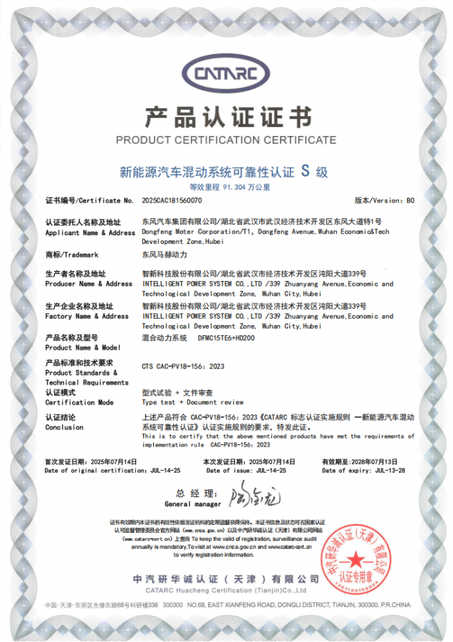 东风全新一代新能源越野动力总成斩获“新能源混动系统可靠性认证S等级”认证