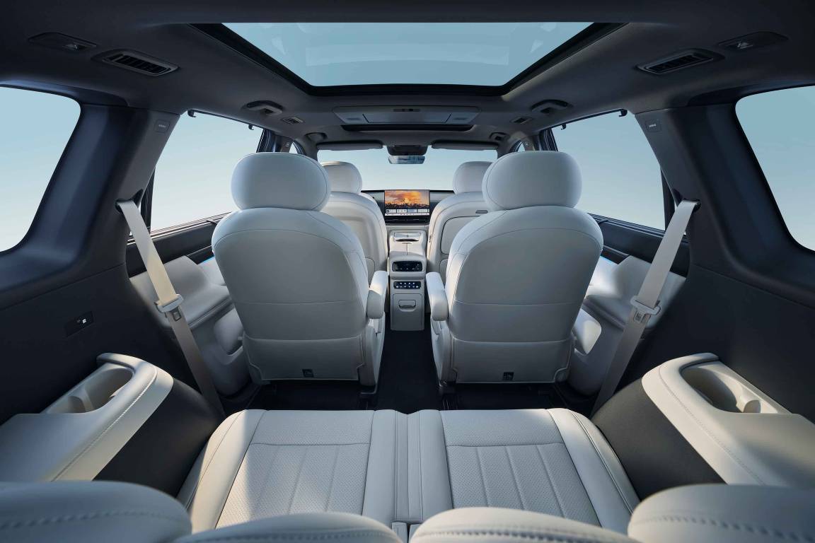 作为“大舒适家”,eπ008的空间是核心优势,5米车长、超3米轴距,搭配真三排大六座布局,座座皆为头等座。全家出游时,180mm的宽过道让家人轻松进入第三排,座椅优化靠背形面,久坐不累;二排采用独立大两座设计,右侧零重力座椅升级10点按摩,力度和面积提升30%,还有座椅通风/加热及新增独立空调温控屏,为家人营造头等舱般尊享感;主副驾则配备8点按摩,力度和面积同样提升30%,有效缓解长途疲惫。此外2026款eπ008主副驾支持完全放平,单人可躺卧看星空,双人可成床休憩。