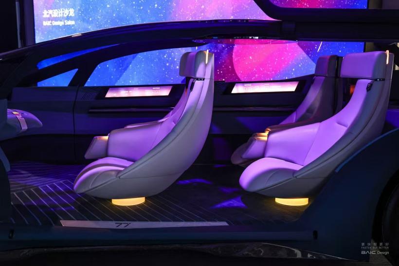 外观上,极狐 ARCFOX 77°概念车融合现代美学与空气动力学效能。低趴的轿跑式轮廓,兼具MPV的多功能属性;极光灯语可智能调节,无框车窗打破传统界限;内饰打造了可随需而变的移动“魔术空间”,全场景座椅、自适应帘幕、可收纳方向盘等设计适配多元需求。