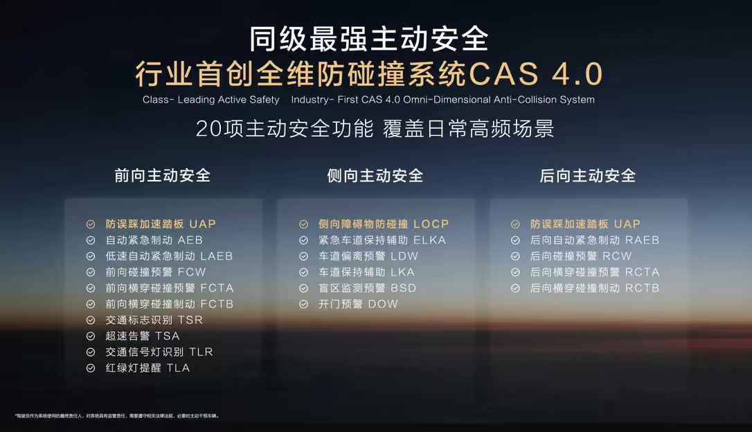 在主动安全领域,全新深蓝S07配备了自动紧急制动AEB、侧向障碍物防碰撞LOCP、防误踩加速踏板UPA等一系列功能。这些功能依托华为乾崑强大的安全性能,在突发状况下能够迅速响应,有效避免或减轻碰撞伤害,为驾驶者构筑了全方位的安全防线。
