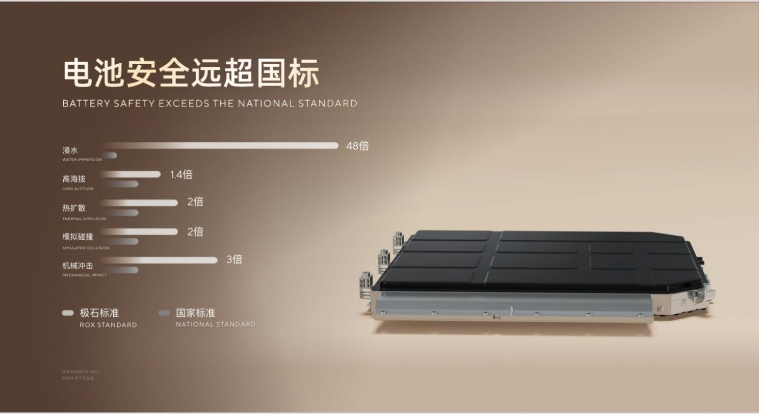 面对越野场景,极石ADAMAS同样具备强悍实力。得益于全地形取向的空悬,最大升降行程达到140mm,车身最大抬升高度80mm,仅需一键即可让车辆从低趴的运动模式穿越至强悍的越野状态。此外,极石ADAMAS还提供公路、山地、泥地、沙地等七种全地形模式,并拥有770mm最大涉水深度与100%爬坡能力。在中汽研L3级进阶越野能力认证中,极石ADAMAS在大交叉轴、鹅卵石路、大交叉坡以及10循环综合越野路在内的13个项目中,均以满分成绩通过,充分证明了其在极端路况下的可靠性与通过实力。