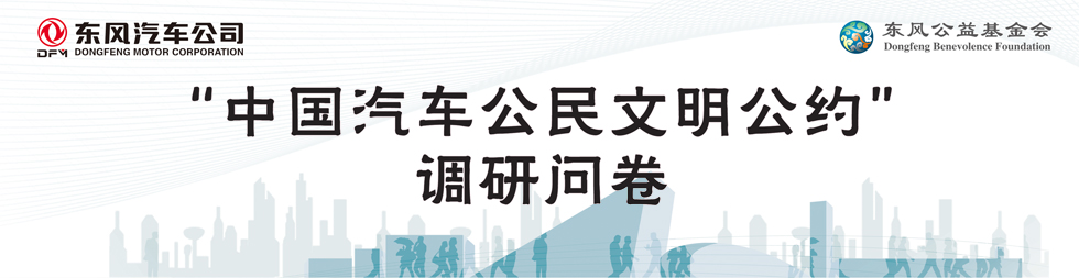 十八届三中全会明确提出要形成政府主导、社会积极参与的公共服务文化建设发展局面;2013年六部委联合推动交通文明管理,倡议“摈弃交通陋习,安全文明出行”;东风汽车公司联合中国道路交通安全协会、中国汽车文化促进会共同发起“创文明汽车社会,做合格汽车公民”调查活动,汇集民意,最终形成《中国汽车公民文明公约》。在此,诚邀大家广泛参与,为中国汽车社会文化建设作出贡献。