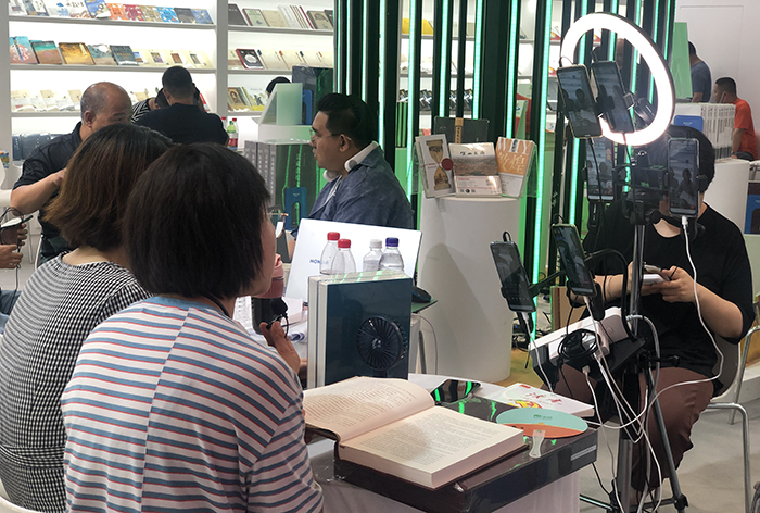 参展单位主播在进行视频直播活动(智佲 摄)