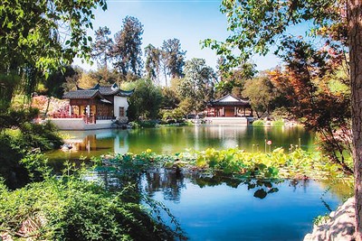 流芳园开园那天,我带着妻儿来到杭庭顿图书馆内的中国园。这是以中国江浙一带园林为蓝本的园林,白墙青瓦的园林门口写着大大的中文字“流芳园”。它是依照苏州园林建造的。据说,建筑材料是从苏州运来,并从苏州请来50多位园林设计师和工程师。园中央有一个湖,平静的湖水映照着蓝天白云,湖里金鱼游弋,湖面上荷叶葱茏。湖旁四处是奇花异石、楼阁亭榭、曲径流水。自此后,我为全家买了杭庭顿图书馆年票,每逢节假日,我总会领着家人去园中悠闲漫步。身处异国,让自己沐浴在中国江南水乡的秀美风光里,领略中华文化的源远流长。