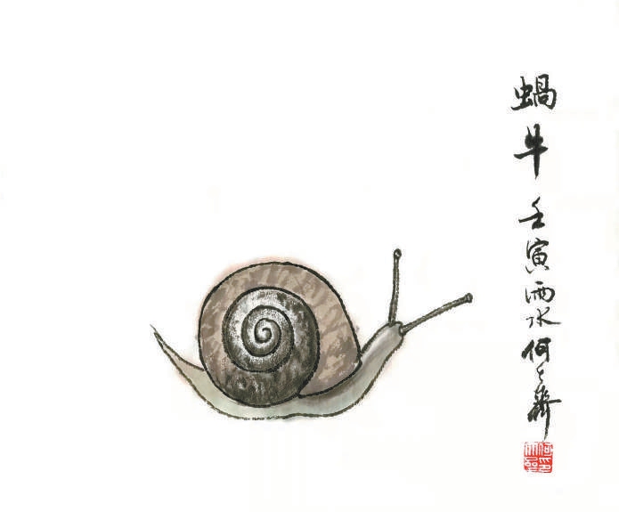 每当雨后,在背阴潮湿的墙角旮旯,就能发现吸在墙上,或正在蠕动的蜗牛,我们那时只知道它叫“水牛(niu一声)儿”。它身背一个陀螺形的外壳,这个外壳就是它的家,平时它全身缩到壳中,用身体分泌出的黏液粘敷在墙壁上,当它要移动或出来觅食时,就会把它那柔软而半透明的身体从螺壳中伸出来。它先出头部的触须,慢慢地再全部出来,沿着墙面蠕动,身后在墙面上留下长长的银色的足迹。我们经常会用手捉拿,它一下子就把身体缩回壳里了。听大人说,你只要冲着它唱:“水牛儿、水牛儿,先出犄角后出头儿。你爹你妈,给你买的烧羊肉,你不吃,也不喝,就让老猫叼走喽!”反复唱,它就出来了。那时年纪小,信以为真,几个孩子,手心都捧着几个小螺壳,傻乎乎的,嘴对着它们一遍遍地大声唱,现在回想这场景还忍不住想乐。偶尔有一次,可能是我手捏得太用力了,它还真出来了。只见触须一伸一缩在试探外面的情况,身体也慢慢出来了,我高兴得不得了,把它放在手背上,招手让周围的伙伴都快来仔细看它的体貌和蠕动,对小动物的这种观察,是小孩子了解世界万物的开始,是大有益处的。