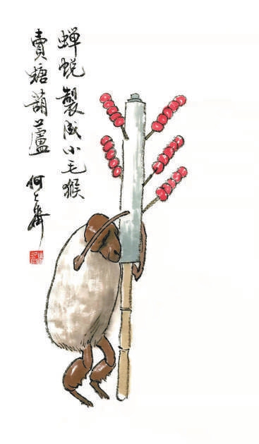 唧鸟儿在成长过程中是要脱壳的,书面语叫蝉蜕,这棕色的半透明的东西可是个宝,有疏散风热、明目的药物作用。有些民间艺人把蝉蜕做成小毛猴,打扮成各行各业的人物形象。我姑姑从隆福寺庙会买回来一套用蝉蜕做的小毛猴工艺品,其中有挑担卖菜的、有卖糖葫芦的、有磨剪子磨刀的、有各类京剧人物。小巧、精致、滑稽,全家人都很喜欢,一直放在客厅多宝槅中供大家欣赏,几年都不走形,不变样,不褪色。