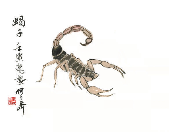 在院子的墙角或台阶下,经常有蝎子和蜈蚣爬出来。有一次我去搬墙角的一摞砖,突然爬出一条蝎子。它身子长圆形的,前面有一对螯(大钳子),有四对爪子,长而上翘的尾巴分成六节,最后一节是一个又黄又光亮的圆球状的毒囊,上面有一弯钩。我知道蝎子是蜇人的,有毒性,就找了一根树枝,敲它后背,那钩子一下子就勾过来,刺向树枝,前面一双大钳子高高举起,真凶啊!它从头到尾得有七八厘米长,专吃小昆虫。遇到人裸露的皮肤,毒刺就会蜇,马上就红肿,人是不能和它接触的。我仔细看过蝎子捕食蟋蟀,它先用两个大螯抓住,再用尾部毒刺蜇刺,蟋蟀立马不动了,接着蝎子就用它的两个大钳子,撕开猎物的身体,慢慢吞食,它只吃昆虫,不吃花草,这是昆虫生物链中的霸王,头号杀手。