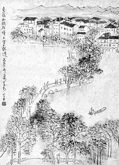 《东阳西湖写生》李可染 绘  图片由苗怀明提供