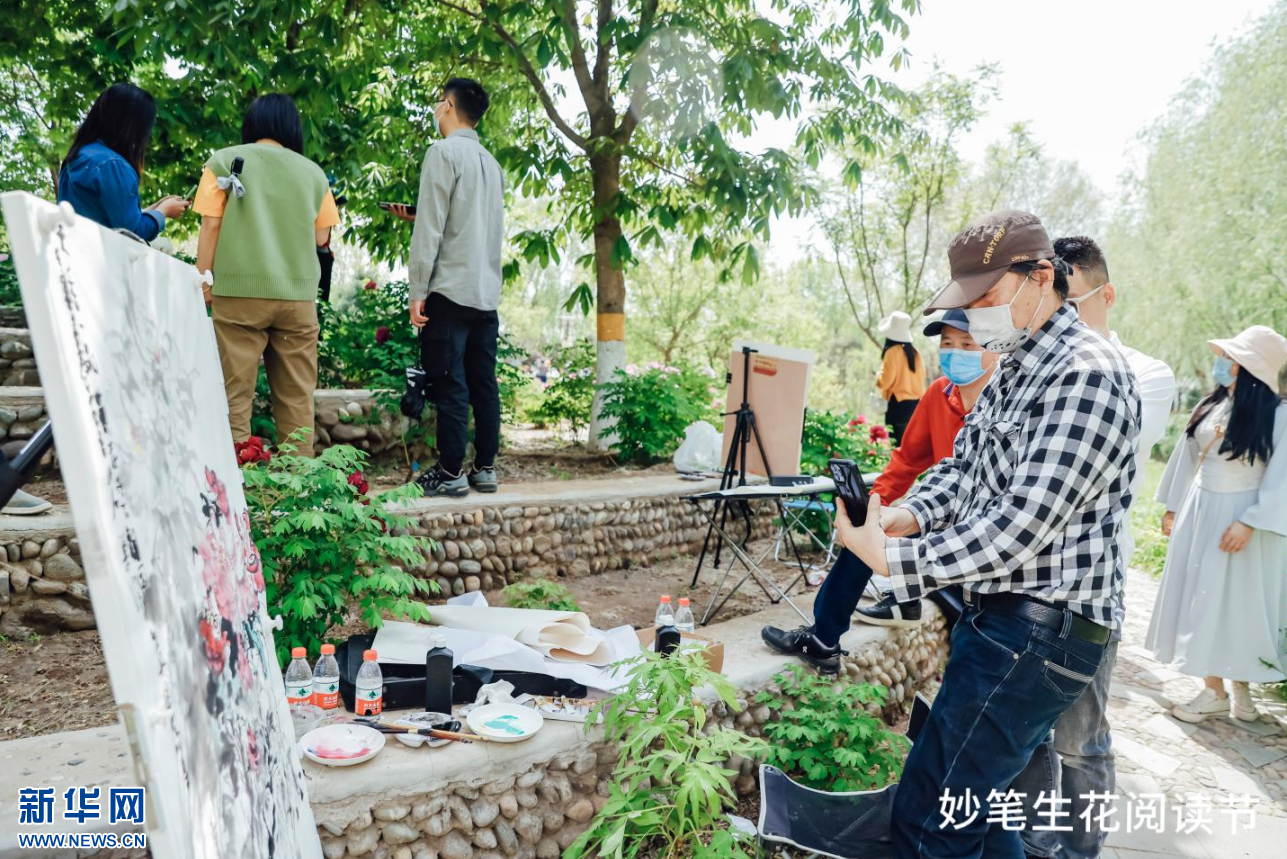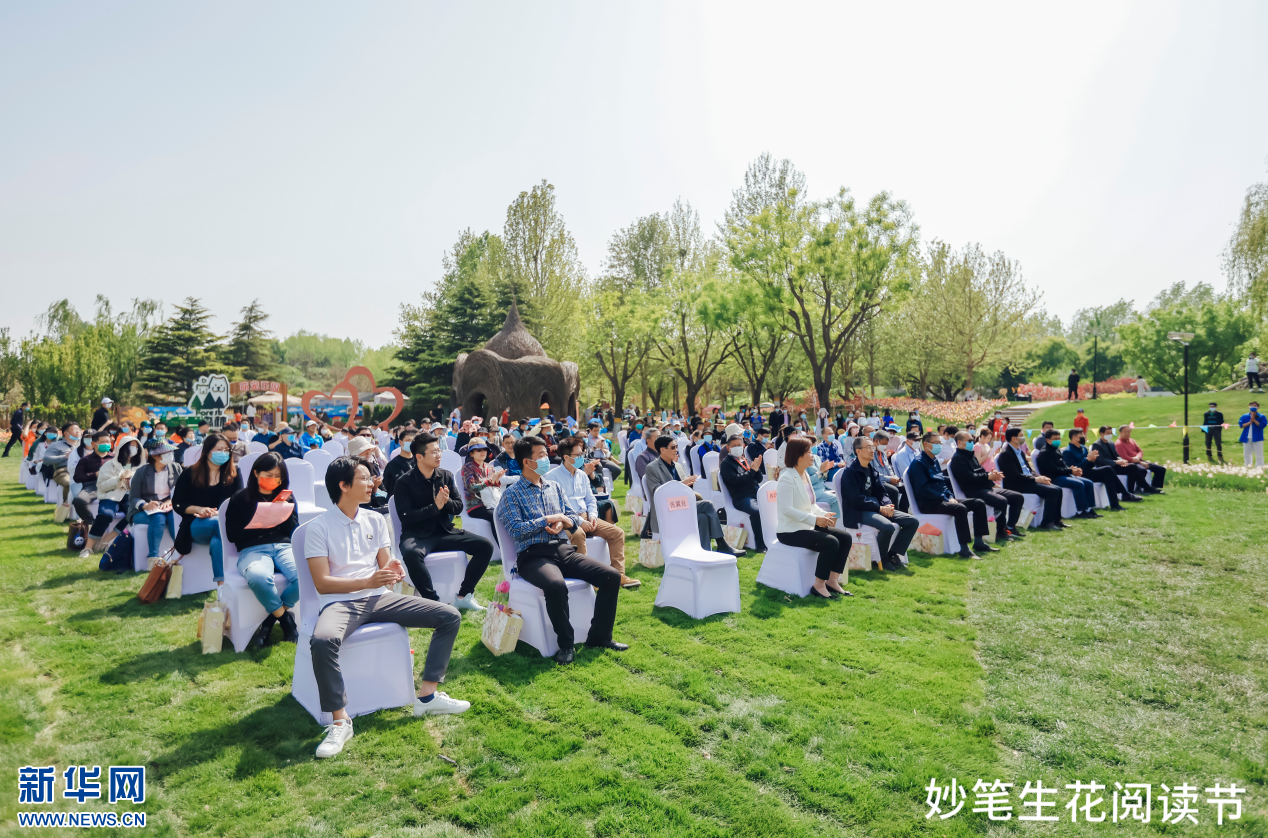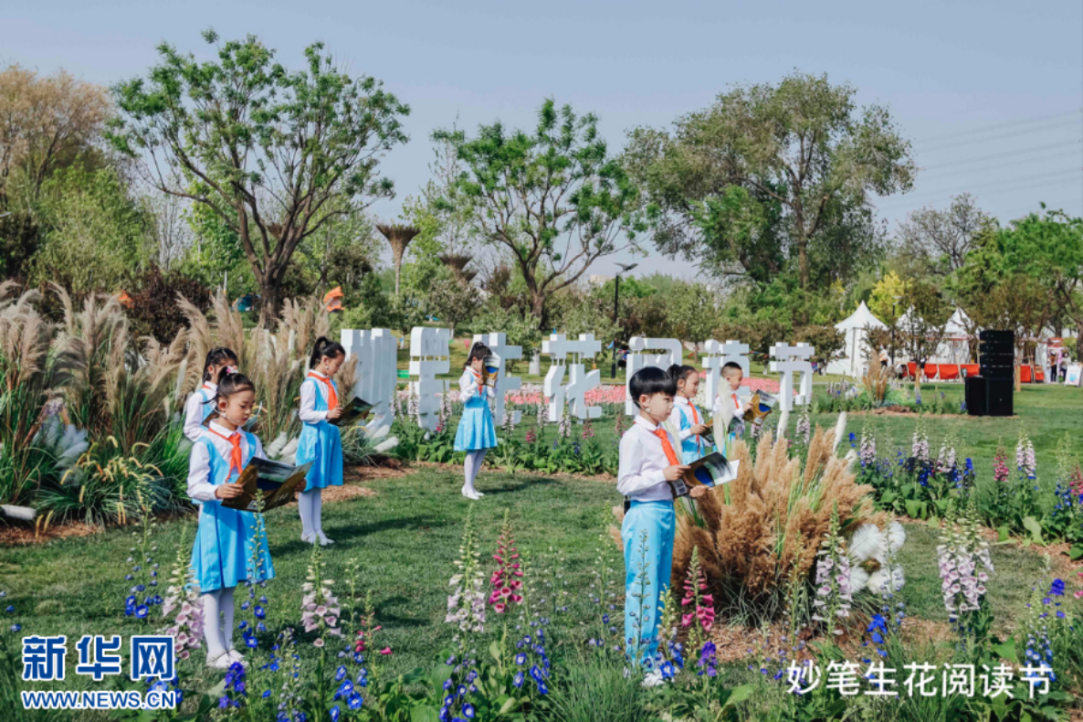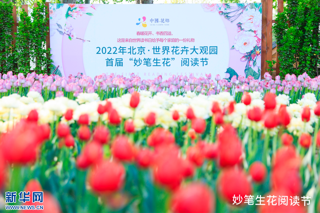 新华网北京4月23日电 4月23日,在第27个世界读书日当天,由北京草桥实业总公司、北京花乡花木集团有限公司主办,北京世界花卉大观园、北京花乡文化科技有限公司承办的全国首届“妙笔生花”阅读节开幕式在世界花卉大观园内开幕。占地41.8公顷的4A级景区世界花卉大观园,正值花期旺盛时,牡丹、海棠、杜鹃、雏菊......花海芳菲,香气萦绕。