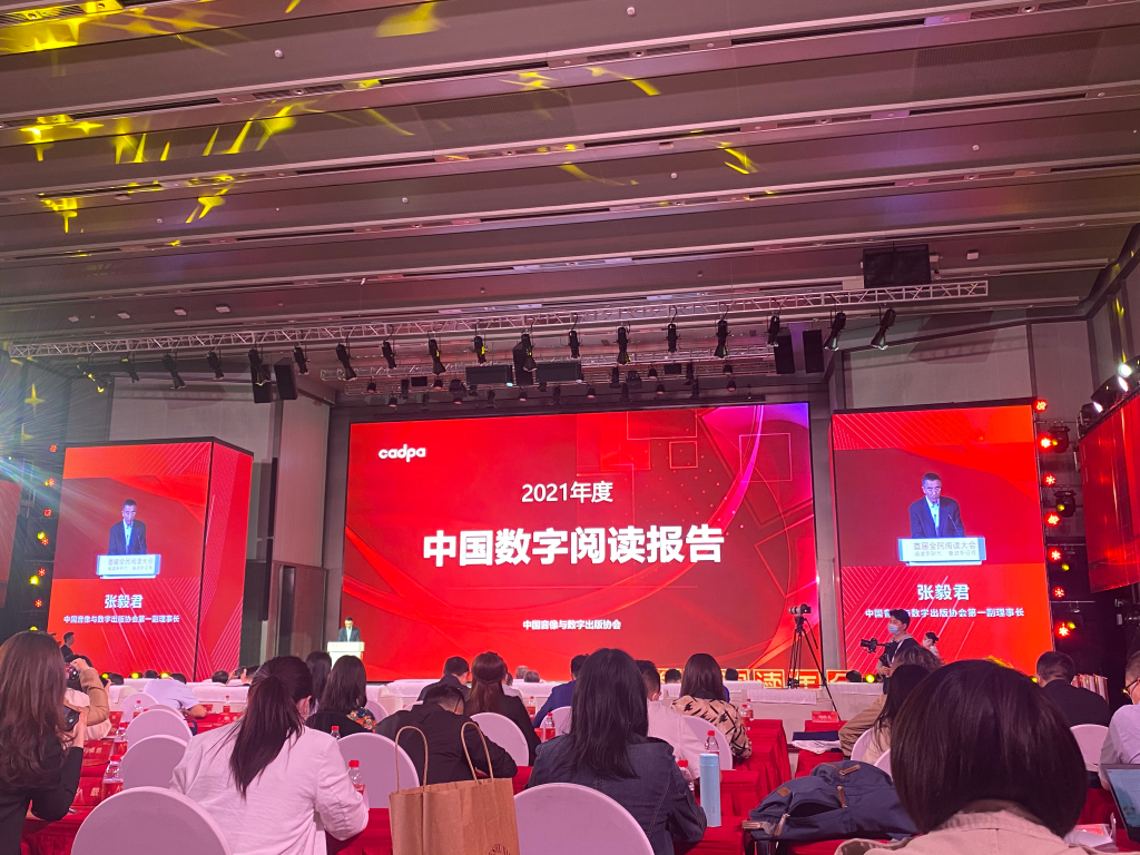 在4月23日举行的首届全民阅读大会数字阅读分论坛暨第八届数字阅读年会上,中国音像与数字出版协会第一副理事长张毅君发布《2021年度中国数字阅读报告》。新华社记者罗鑫 摄