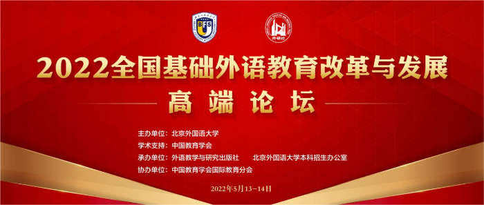 5月13日,由北京外国语大学主办,中国教育学会提供学术支持,外语教学与研究出版社、北京外国语大学本科招生办公室承办的“2022全国基础外语教育改革与发展高端论坛”开幕。论坛围绕“守正创新 铸魂育人——新课改背景下的基础外语教学改革与教师专业发展”的会议主题,下设9个专题论坛,4个分会场。