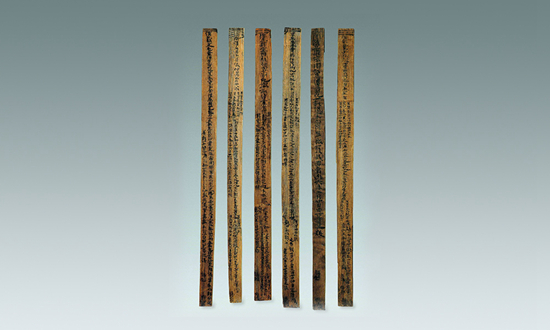 嘉禾吏民田家莂。莂是可剖分的契约文书,一式两份或多份。归档时,这些田家莂被编连成册,这种简册形成了我国竖排本书的雏形。从券书上我们可以看出孙吴时长沙郡临湘县佃户租佃土地的数量及须向官府交纳钱粮、布匹等赋税的数额。长沙简牍博物馆供图
