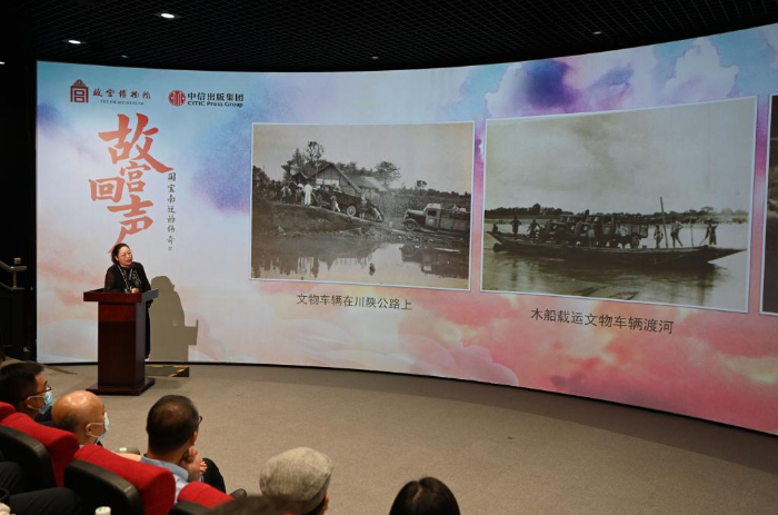 8月22日,故宫博物院文物南迁研究所所长徐婉玲在发布会上介绍文物南迁历史。