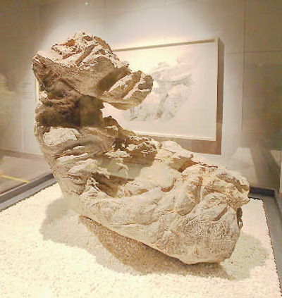 展厅中一块奇石吸引了记者的目光。王子林介绍,此石为灵璧石,因石“如天风遏云抱崖绮布之势”,取郦道元《水经注》中“造云壁立”而命名,“造云”二字刻于石额间。造云石原为元代苏州玉山草堂主人顾瑛所藏,石上题刻记述了元至正十年(1350年)秋以赏石为主题的雅集盛事。此石后来进入紫禁城,陈设于建福宫惠风亭西北隅。