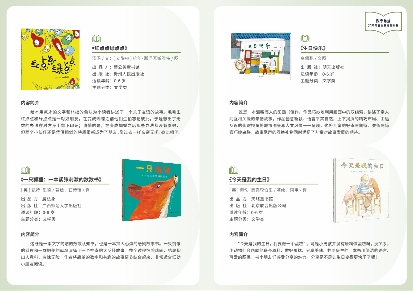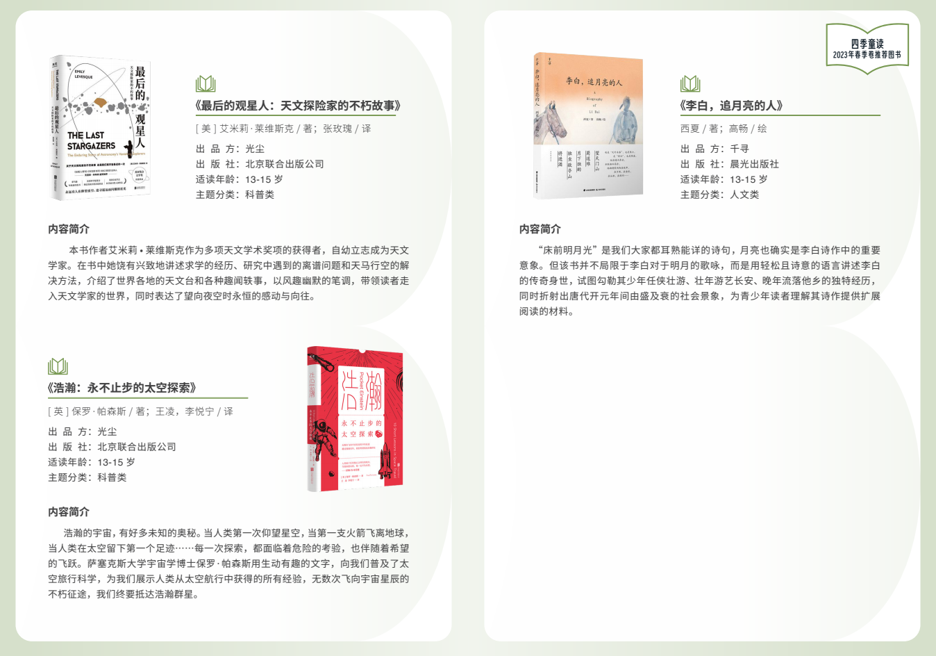 附:“四季童读”春季卷推荐书单(图片由国家图书馆提供)