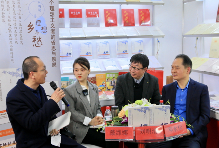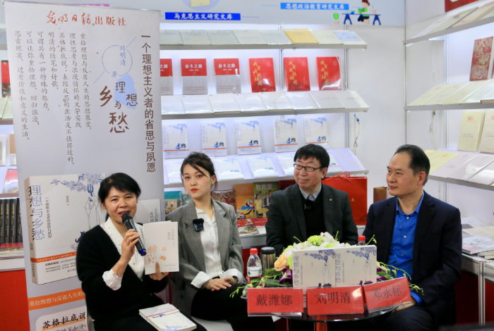 2月25日下午,著名出版人、中央编译出版社前总编辑刘明清的《理想与乡愁——一个理想主义者的省思与夙愿》及诗集《人生归处是田园》读者分享会在第35届北京图书订货会光明日报出版社展区举行。分享会由北京金牌阅读推广人、雨枫书馆创始人许春宇主持;青年诗人、学者戴潍娜,光明日报出版社总编辑邓永标作为嘉宾与本书作者刘明清一起进行了研讨。
