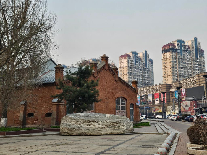 厂房侧面有一座花岗岩巨型卧碑,碑文标题为“哈尔滨早期工人革命斗争纪念地 哈尔滨车辆厂旧址”。卧碑上记录了哈尔滨工人运动的兴起——这里的工人第一次纪念“五一”国际劳动节,第一次传唱《国际歌》……