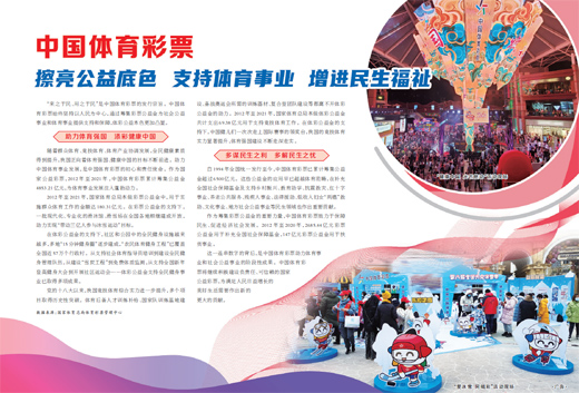 “来之于民、用之于民”是中国体育彩票的发行宗旨。中国体育彩票始终坚持以人民为中心,通过筹集彩票公益金为社会公益事业和体育事业提供支持和保障,体彩公益本色更加凸显。