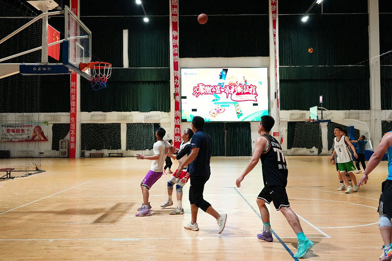 (正在奈曼旗全民健身中心打篮球的当地市民)