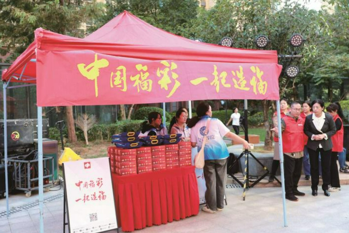 2023年10月20日,湖北省福利彩票发行中心为武汉南湖锦城社区居民献上“情暖重阳,爱在锦城”惠民演出,并安排10名党员作为志愿者协助社区开展活动。