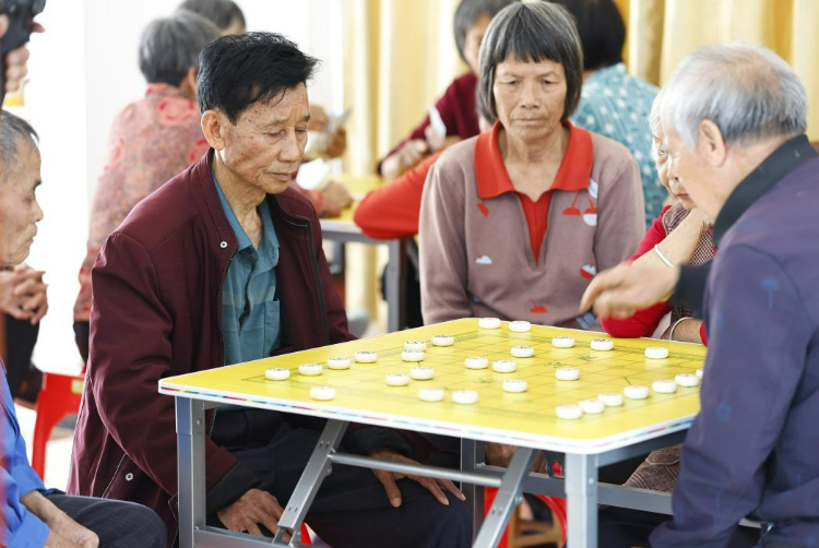 石尾村居家养老服务中心分为上下两层,一楼为老人活动场所,配置了象棋桌、各类书籍杂志等休闲娱乐设备,供老人休闲娱乐、学习知识等。