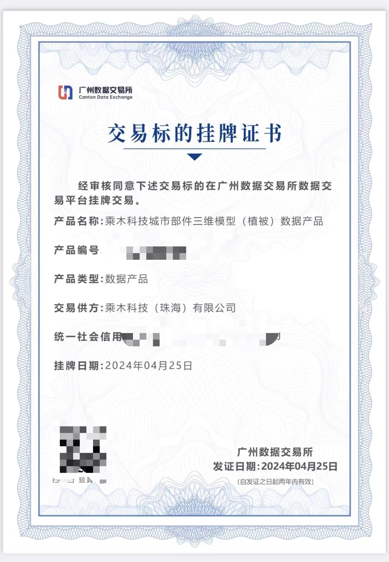 当前,乘木科技研发的“城市部件三维模型(植被)”数据产品已在广州数据交易所完成上架交易 ,成为全市首家获得数据资产凭证并完成闭环交易的民营企业 ,其余5款“城市部件三维模型”系列产品也已陆续上架,数据权属、经济利益、成本可靠等数据资产适配度得到了综合认定。这次顺利完成数据资产入表和金融机构的授信融资,标志着香洲区已具备数据资产“治理、合规、确权、定价、入表、金融化” 资产化全流程闭环能力,“数据要素×香洲模式”正在数据要素应用创新发展之路上行稳“质”远。