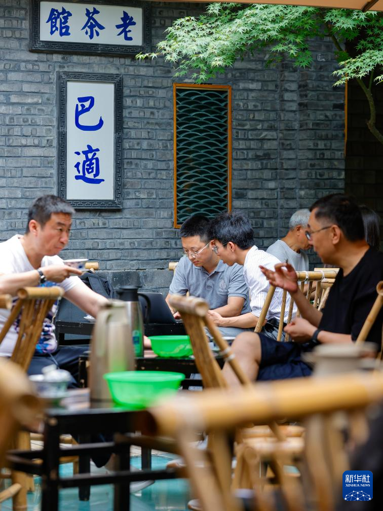 人们在成都太古里大慈寺内的茶社喝茶(2023年6月7日摄)。新华社记者 沈伯韩 摄