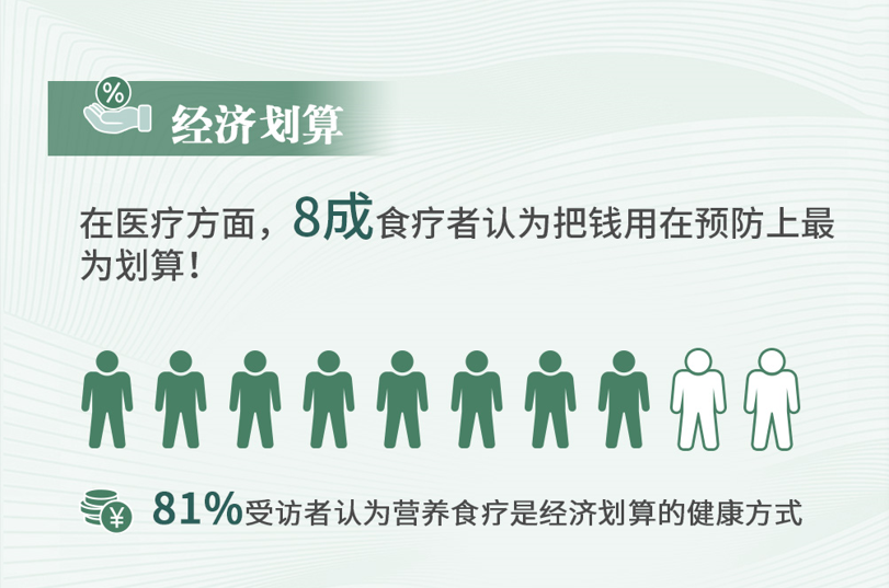 高达八成的受访者表示,从经济的角度出发,他们认为营养食疗是一种“最划算”的医疗消费结构。这一观点背后反映的是公众对于预防医学的深刻理解和对其价值的认可。受访者普遍认为,预防投入的成本远远低于发病后的医疗开销,营养食疗作为一种预防手段,其成本相对较低,且效果持久。通过长期坚持健康的饮食习惯,人们可以在日常生活中不断积累健康资本,减少因疾病带来的经济负担和心理压力。